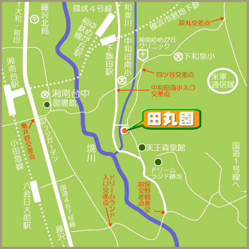 国道467号線藤沢方面に向かい、亀井野交差点を左折